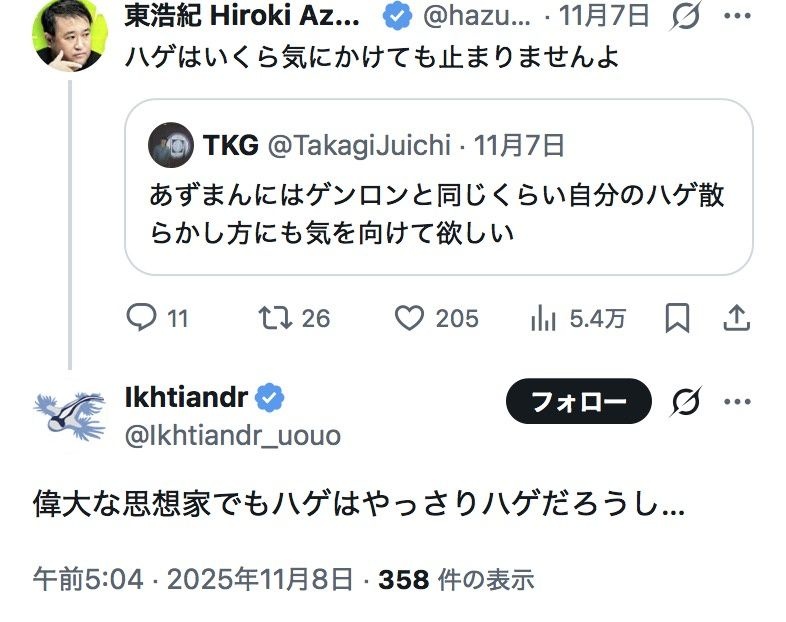 ハゲ散らかしのこと言われてるのに勝手にハゲだけに話をすり替えるなよこのハゲ
