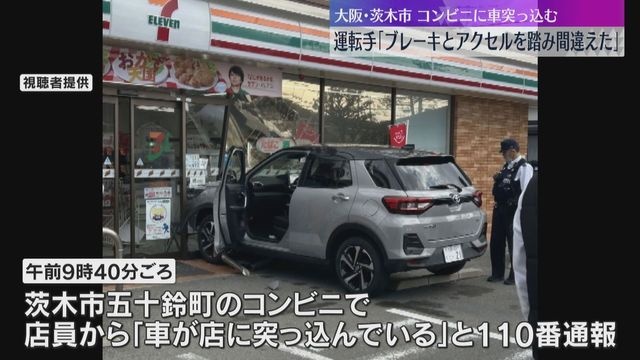 事故があったのは、茨木市五十鈴町のコンビニで、10日午前9時40分ごろ、「車が店に突っ込んでいる」と110番通報がありました。
