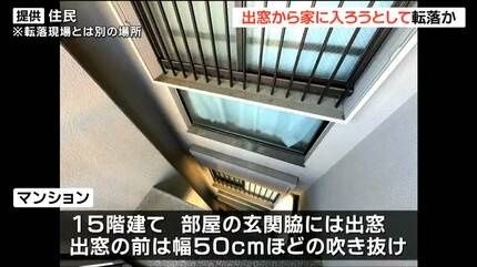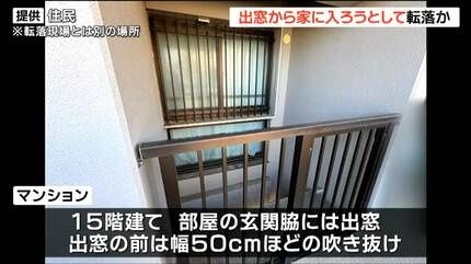住民提供の写真は、転落があった現場とは別の場所ですが、どの部屋も同じつくりになっていると見られます。出窓の前に50センチほどの隙間が空いていて、吹き抜けとなっています。警察が詳しい状況を調べています。