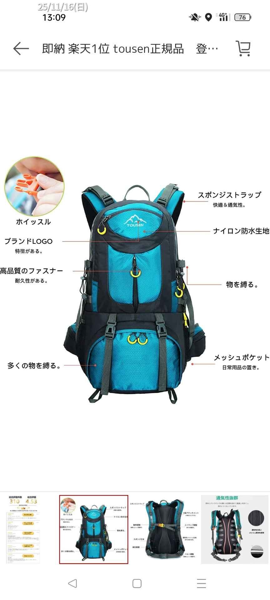 リュックでは安物や