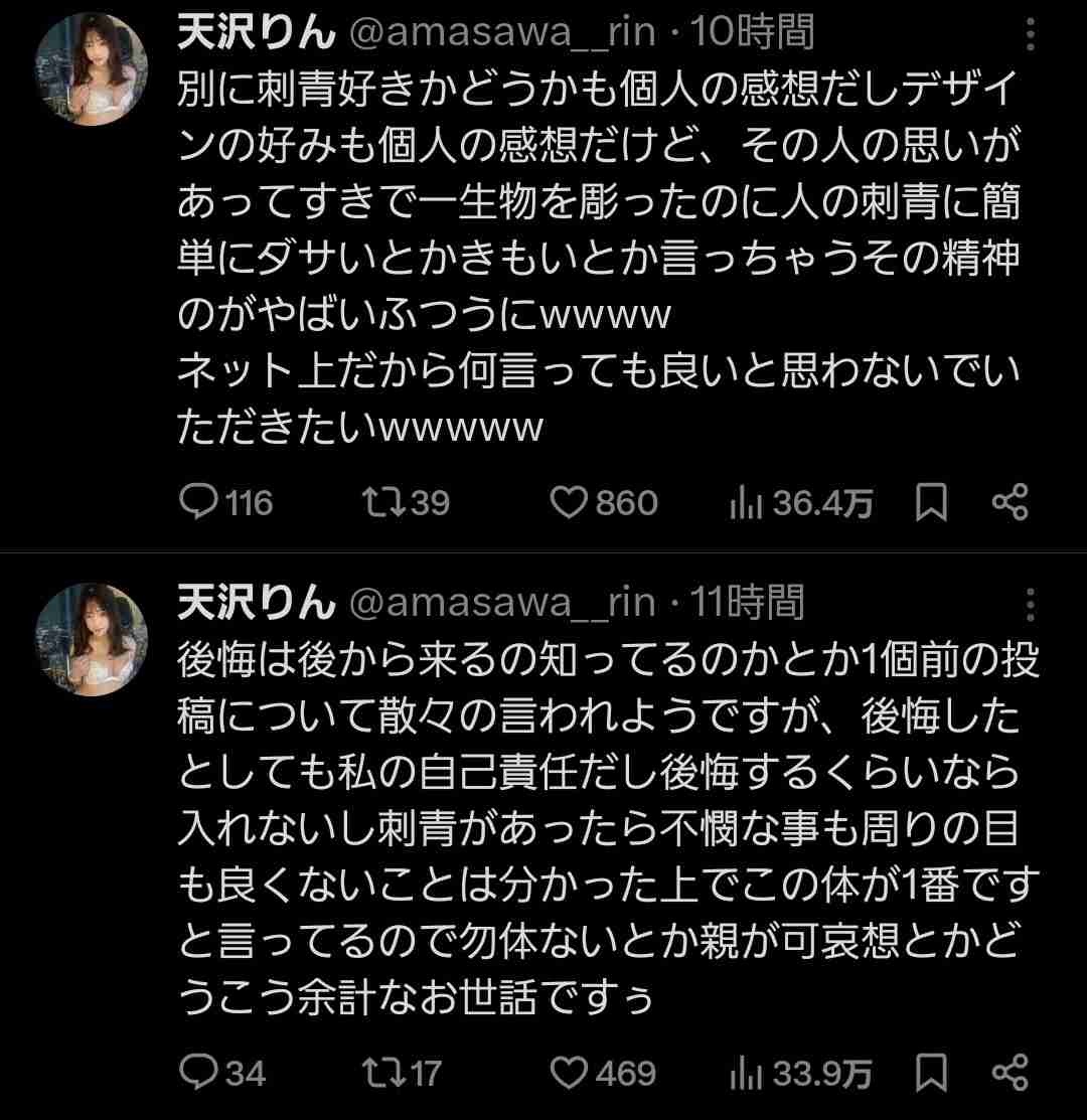 刺青は別にいいと思うけど、この感じだとあとで後悔するタイプだろうなと