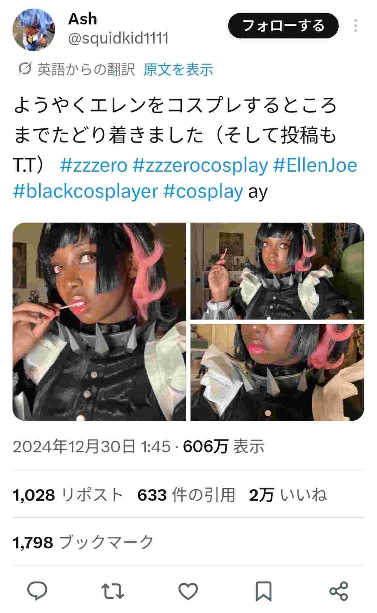 黒人って時点でキャラ主体のコスプレは無理だよ