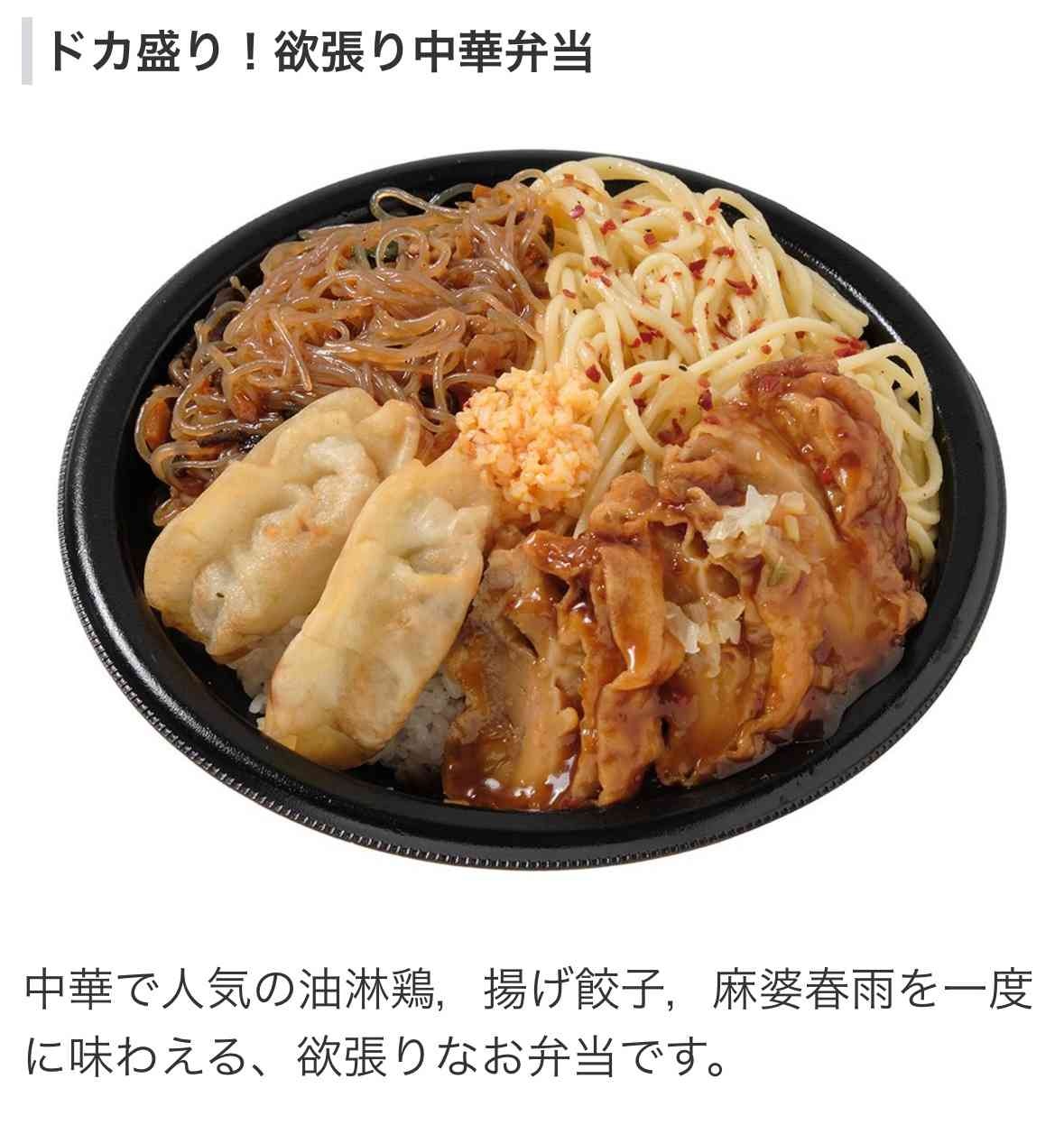 中華で人気の油淋鶏,揚げ餃子,麻婆春雨を一度に味わえる、欲張りなお弁当です。698円(税込753.84円)