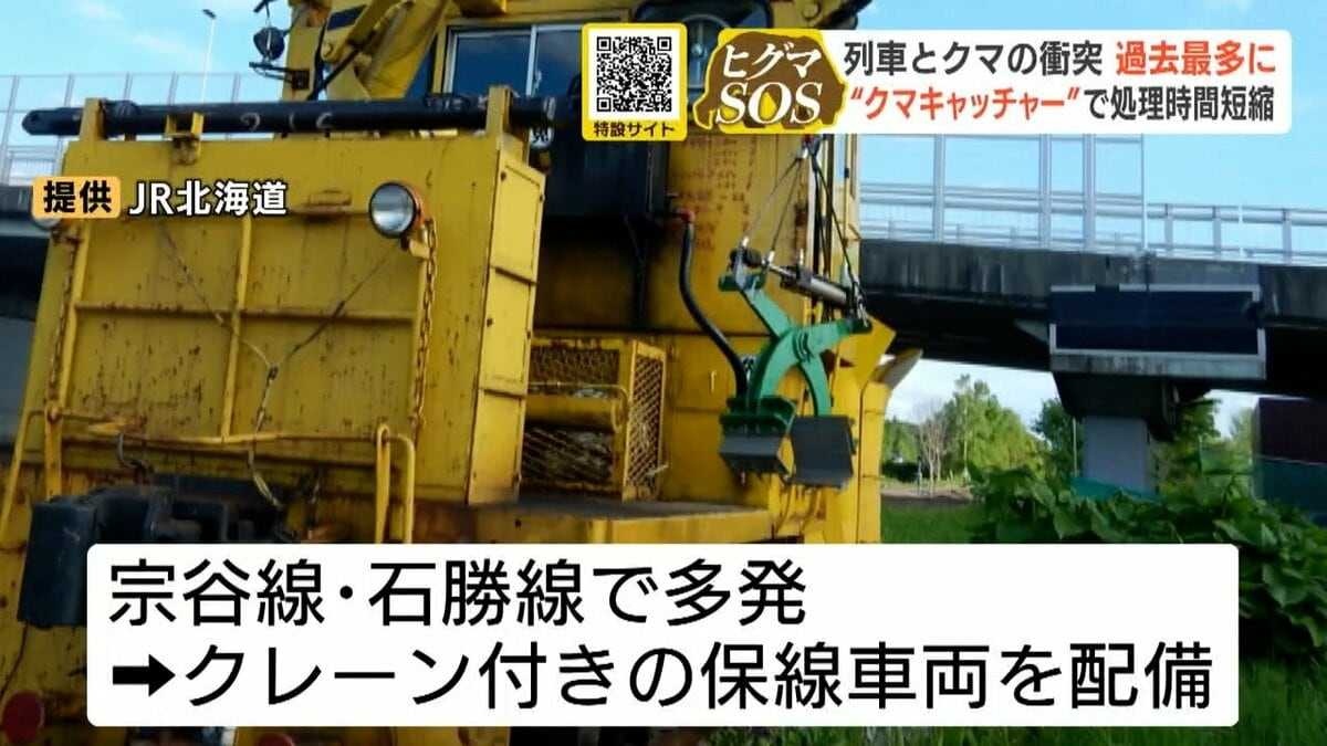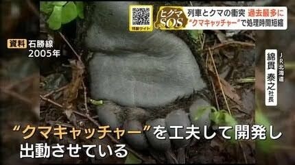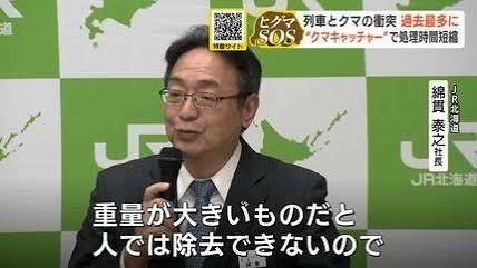 【JR北海道】列車とクマの衝突が今年度56件、過去最多だった2023年度を上回る 綿貫泰之社長「人では除去できないので、開発したクマキャッチャーを出動させている」
