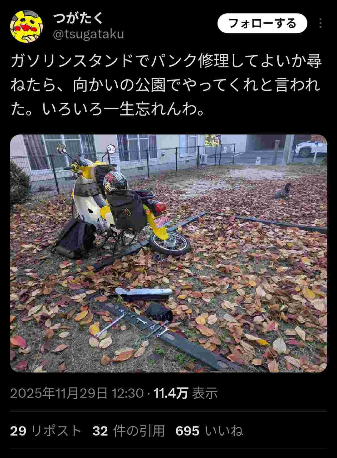 金払えよ、そもそもバイクのパンク修理してくれるか知らんが