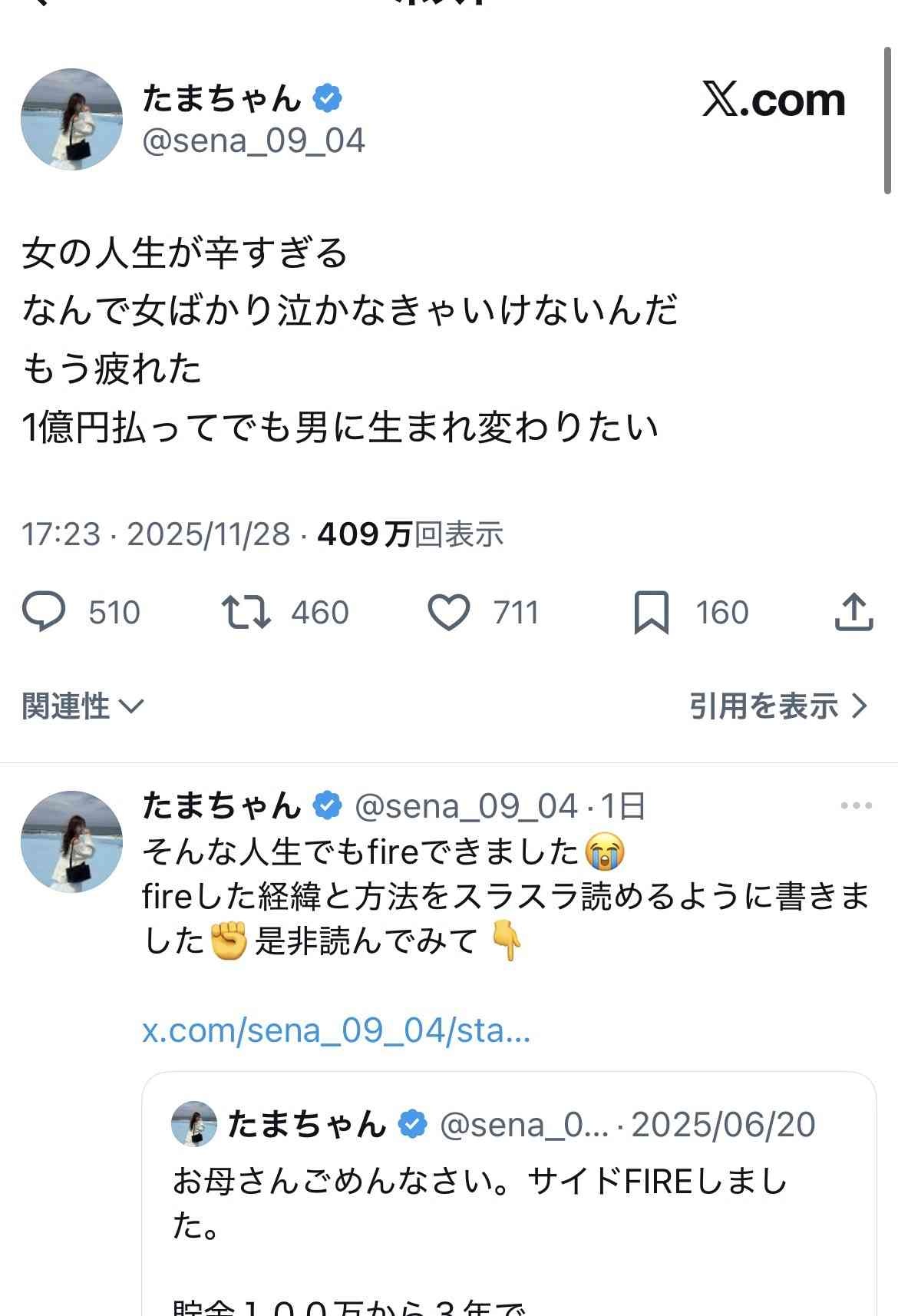 女はつらいことから金を払えば逃げられると思ってるのが甘えの証拠なんだよな、男は金があってもなくても逃げられないんだわ
