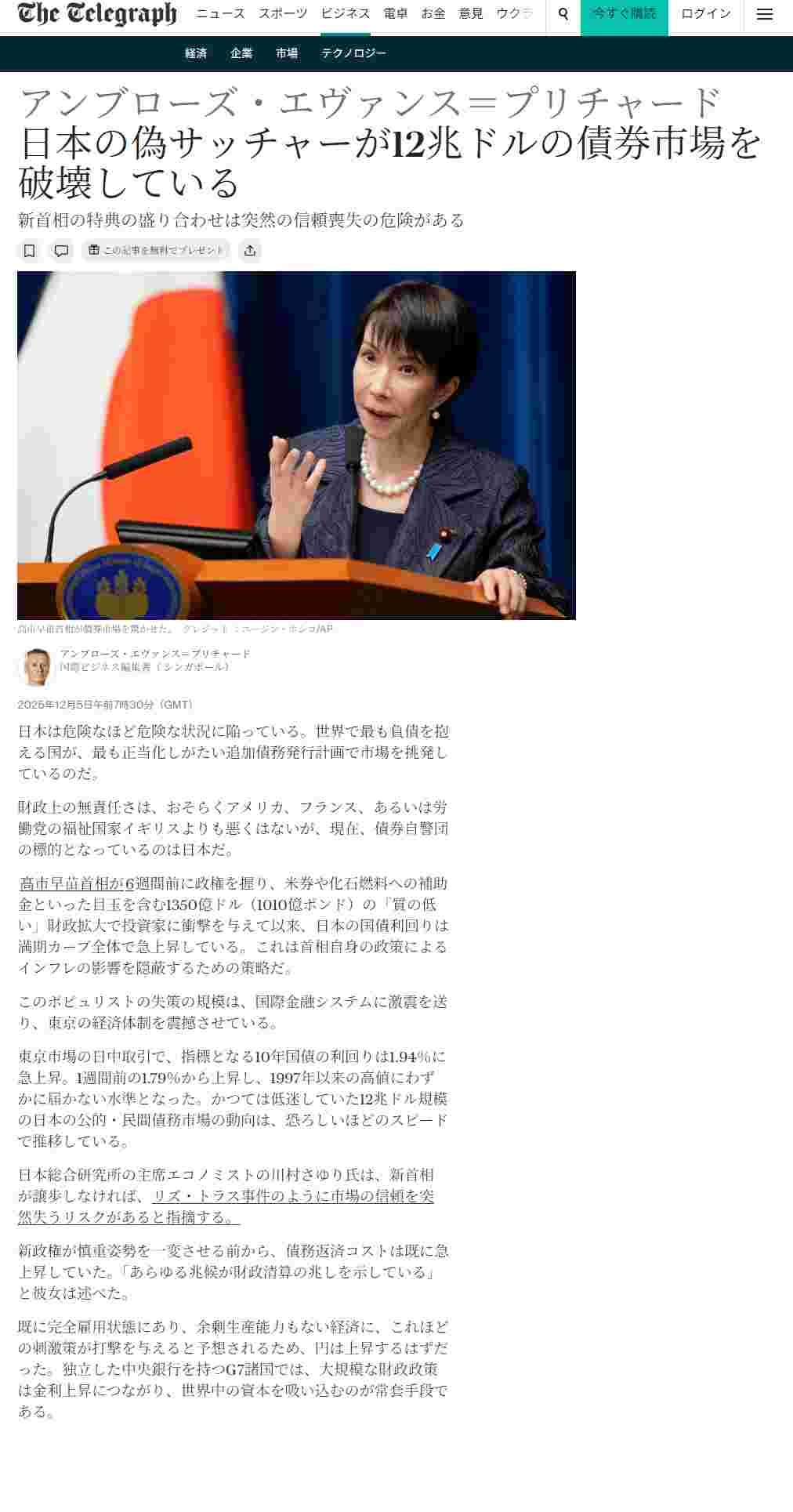 英保守高級紙「日本の偽サッチャー、12兆ドルのバラマキは市場の信認喪失を招く」