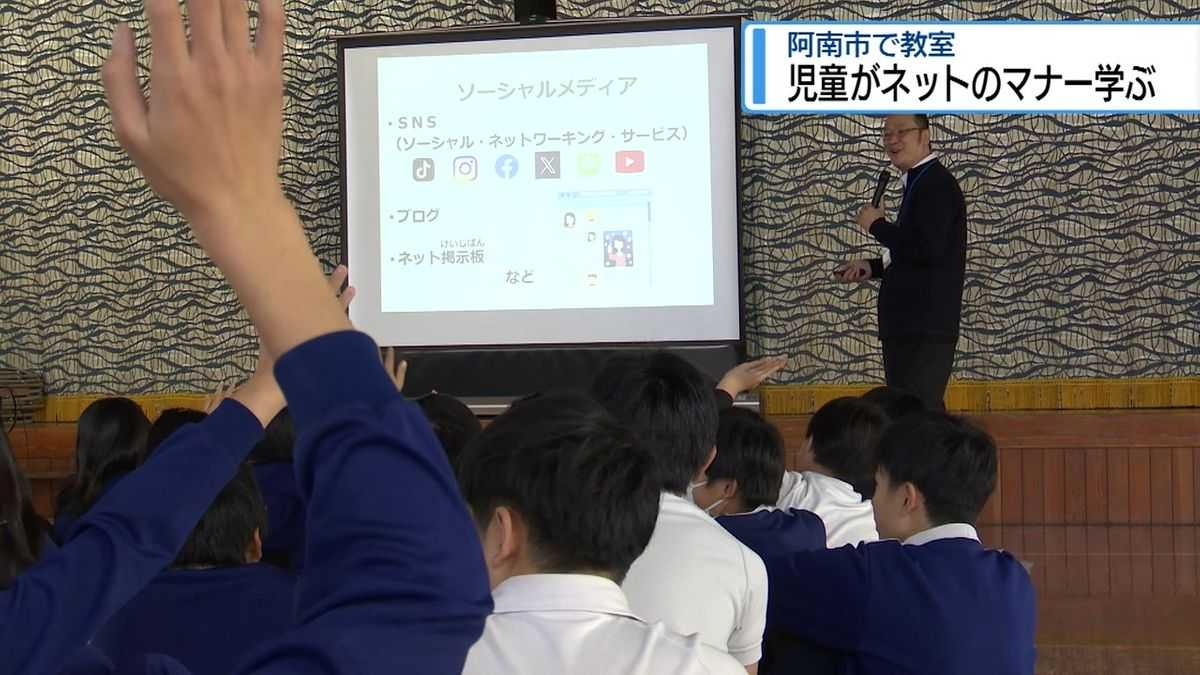 阿南市の小学校で12月9日、インターネットやSNSについての教室が開かれ、児童らがこれらを安全に使うためのマナーなどを学びました。