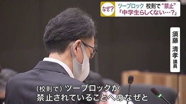 都議会議員の池川友一氏が委員会にて、ツーブロック禁止の理由を教育長に問うたところ、「外見等が原因で事件や事故に遭うケースなどがございますため、生徒を守る趣旨から定めている」と回答があった。ツーブロックを禁止することが理不尽であり,また「事件や事故に遭う」という理由が「意味不明」だということで、動画を掲載した池川氏のツイートは5.8万件のリツイート、14.3万件の「いいね」が付き、動画は647.7万件の再生を数えた(2021年4月30日時点)。