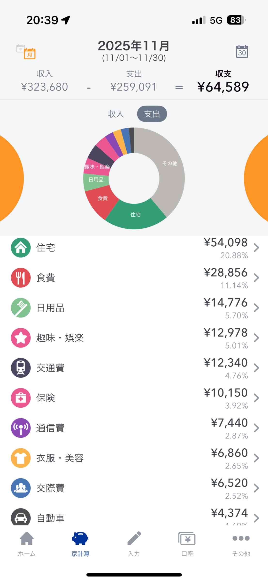 生活費15,二ーサ20でなんで支出25万なんだよお前