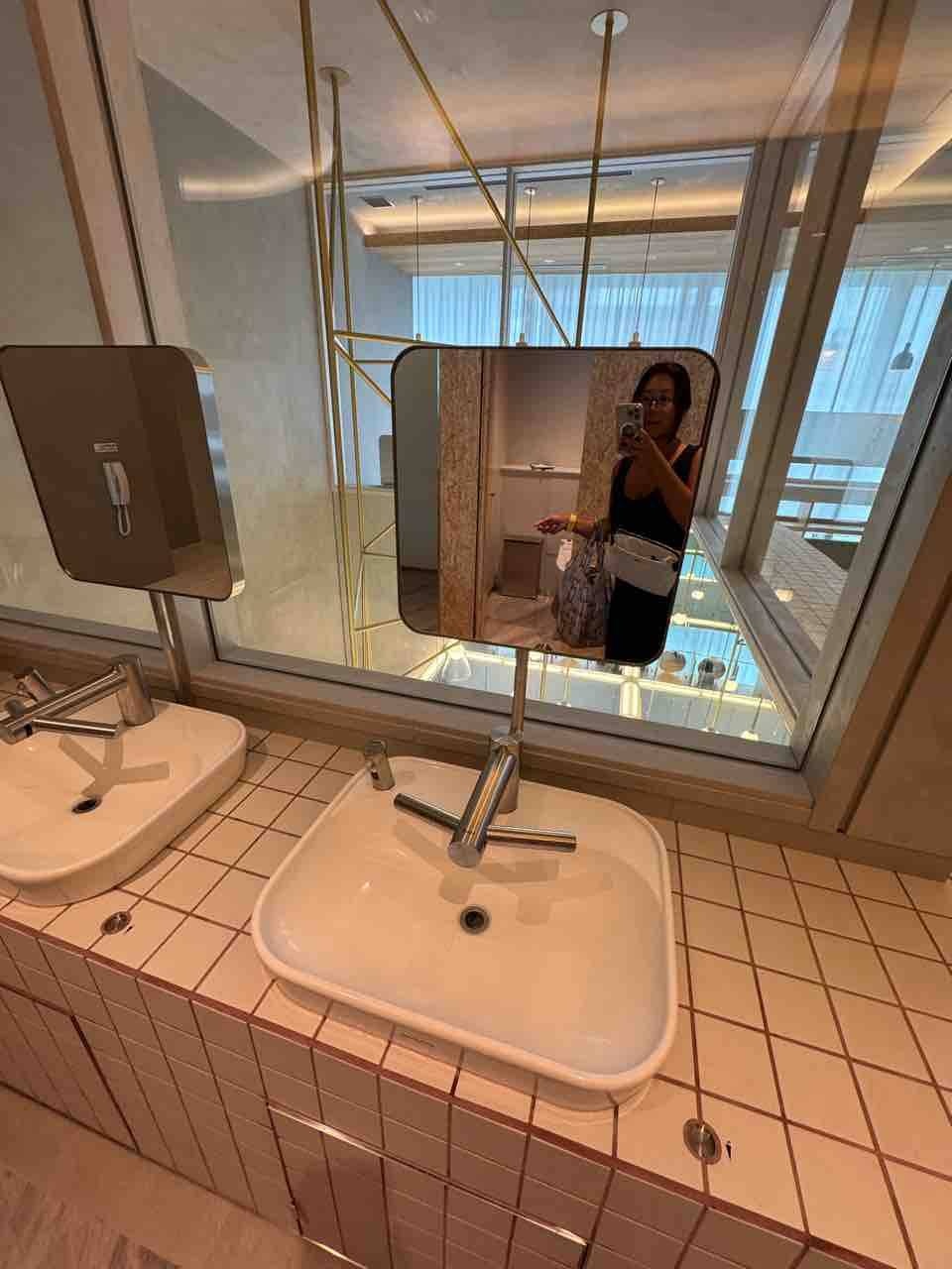 ハンドソープが出る所の手前にハンドドライヤーがあって