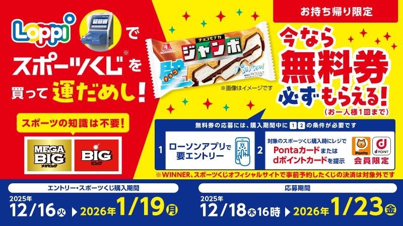 【予告】チョコモナカジャンボの無料券がもらえる!ローソンLoppi スポーツくじキャンペーン|ローソン公式サイト