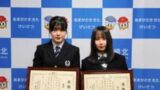 感謝状を受けた植田さんは「困っている人がいたら、積極的に声をかけて助けたい」とにっこり。将来は心理カウンセラーになりたいという石田さんは「これからも人に寄り添うことを大切にしたい」と話した。