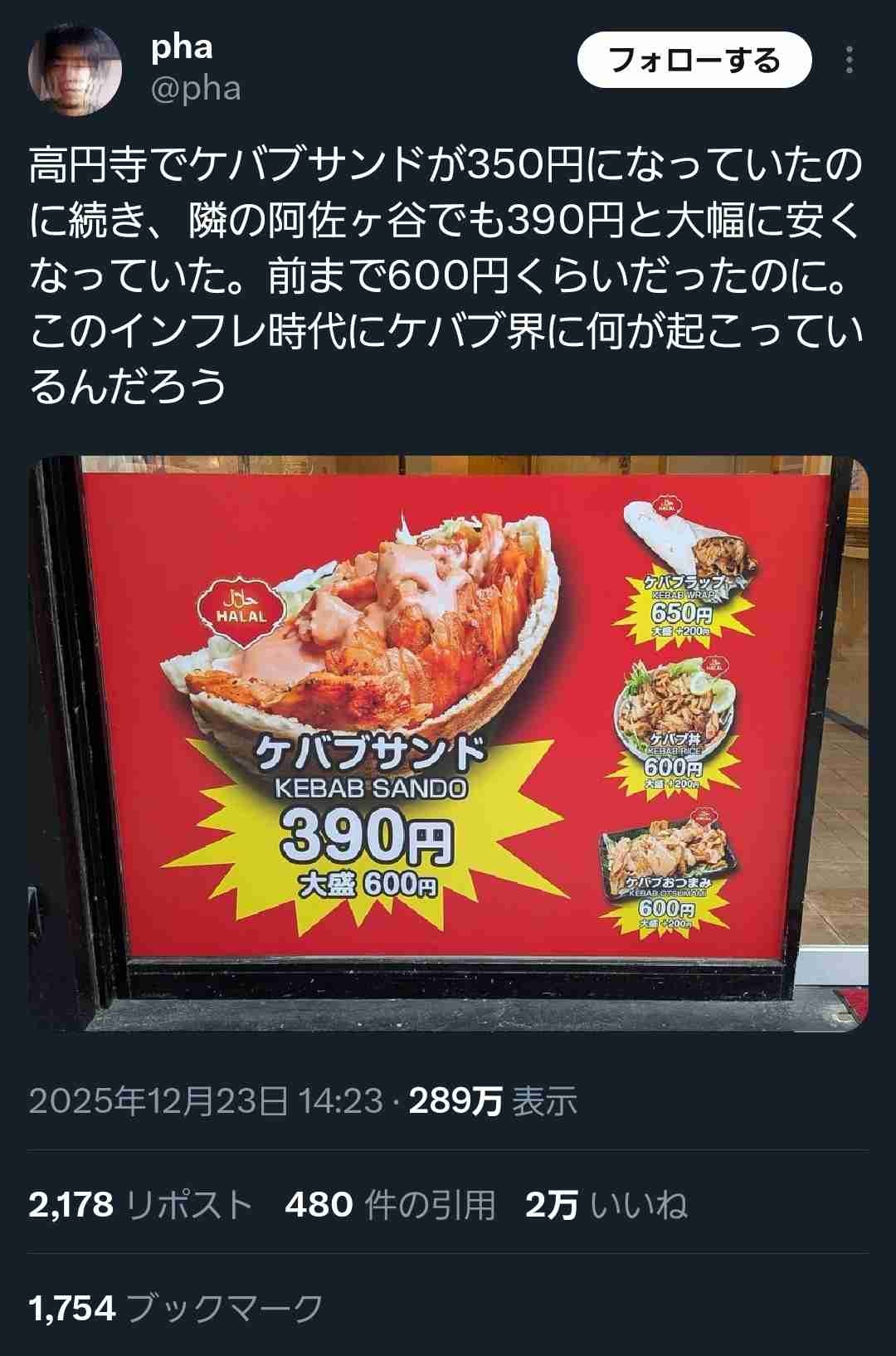 値段の前にケバブ屋自体が最近増えてるんだよなあ 一体何があったんだろうか