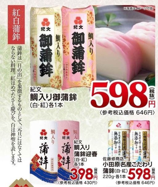 正月前に安いかまぼこ買うつもりでスーパー行ったけどもう正月用のしかなかった