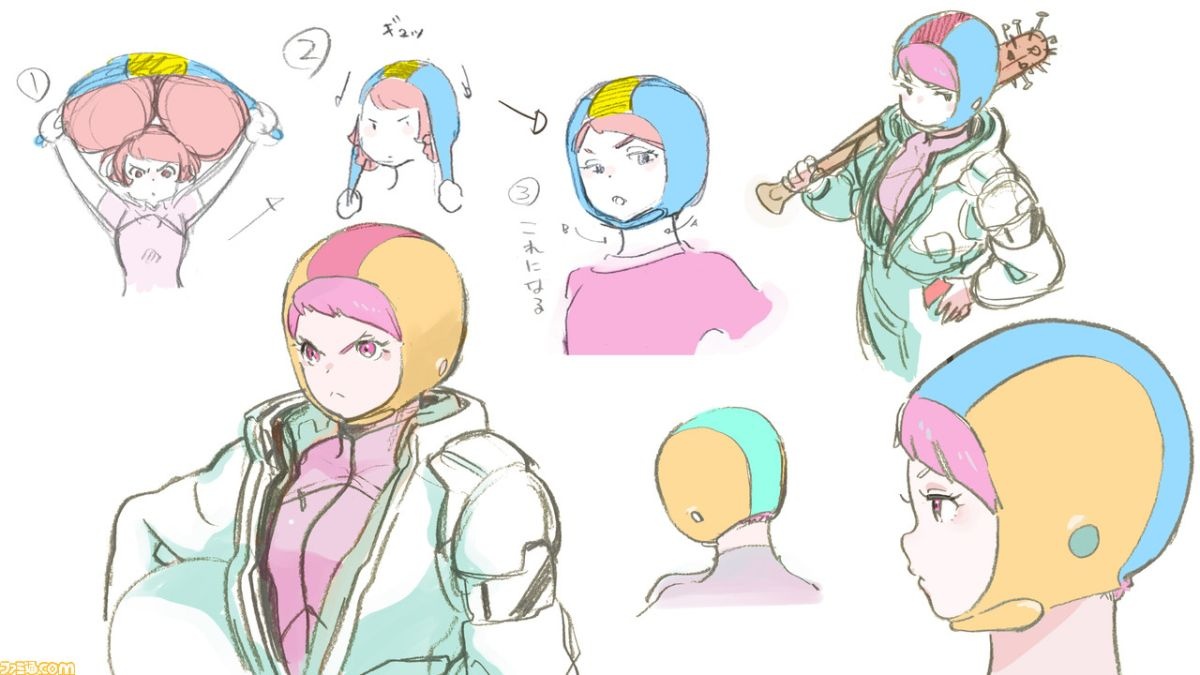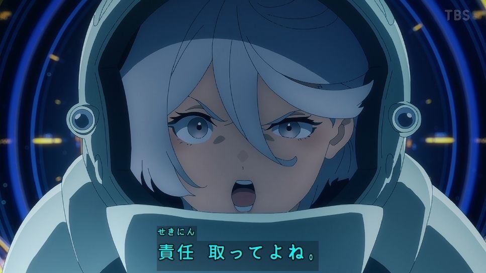 チュチュのパイロットスーツ姿について、第4話の視聴者からは「あの髪をどうやって収納しているのか」という風にもSNSで話題となっていたが、その疑問を解消する設定集が公式より公開。設定集には、かぶりもので髪を押さえつけてコンパクトな見た目になっていたり、なぜか釘バットを持っている姿が確認できる。