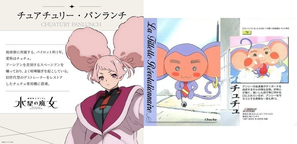 チュチュことチュアチュリー・パンランチ(声:富田美憂)は、地球寮に所属するパイロット科の1年生。ボリューミーな髪をふたつにまとめた特徴的なヘアースタイルをしており、第4話“みえない地雷”では、普段からは想像もつかないほどコンパクトな髪型になったパイロットスーツ姿を披露。ほかにも同エピソード後半のとあるシーンでは、彼女の名前が放送後にトレンド上位に食い込むほどの盛り上がりを魅せた。