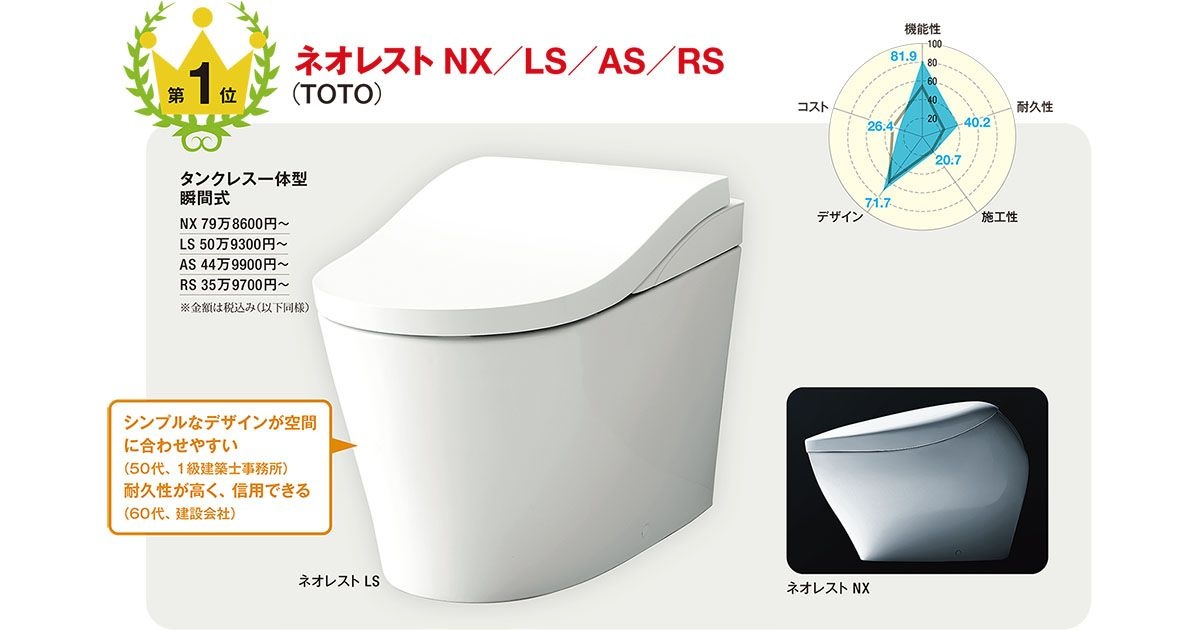 1級建築士が「採用したい」住宅用トイレ製品ランキング、トップ5はこれだ | 日経クロステック(xTECH)