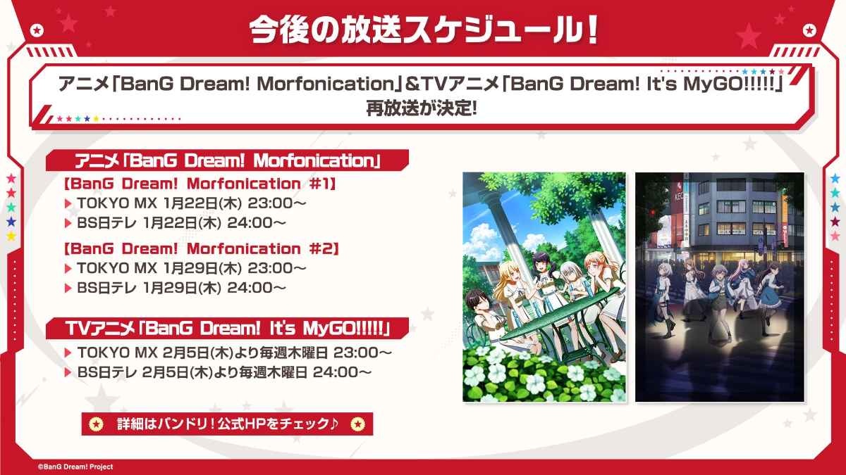 「BanG Dream! Morfonication」「BanG Dream! It’s MyGO!!!!!」の再放送が決定🧭