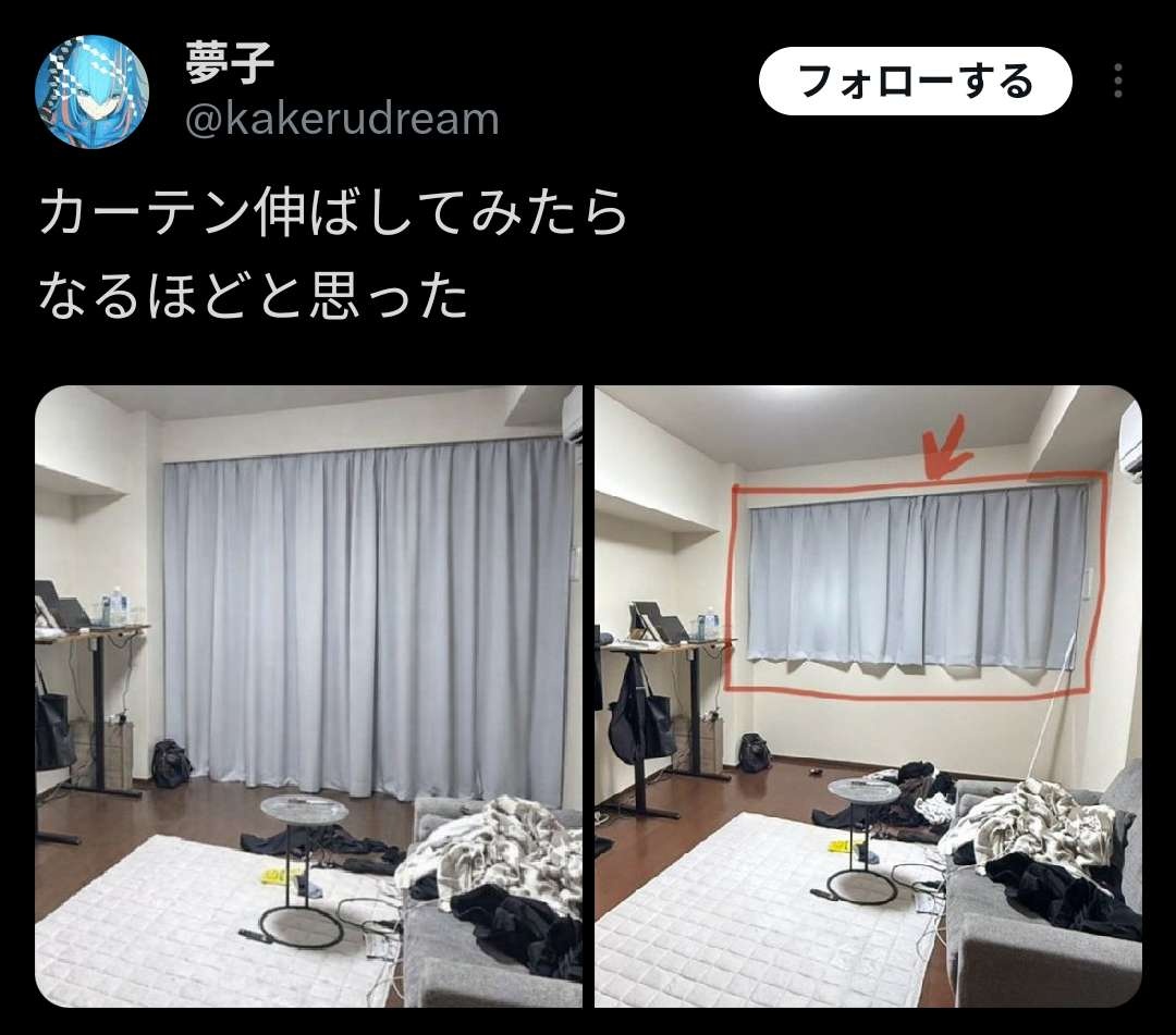 カーテン変えるだけでインテリアまでついてくるとかお得だな