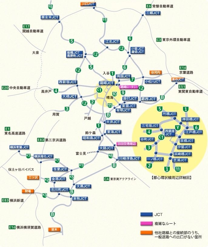 ★東京IC(世田谷区)…第一東海自動車道(東名高速道路)と接続。ちなみに用賀出入口もある。