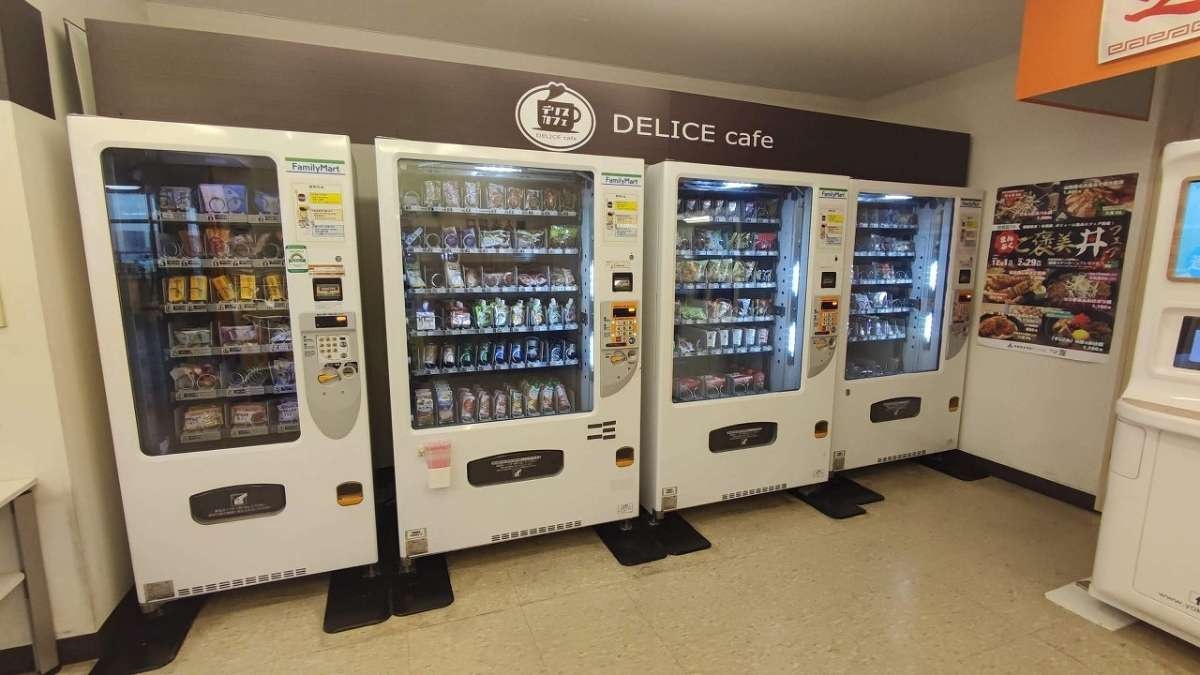 D 売店は無いがコンビニ(ファミリーマート等)の自動販売機があり、軽食を買うことができる。