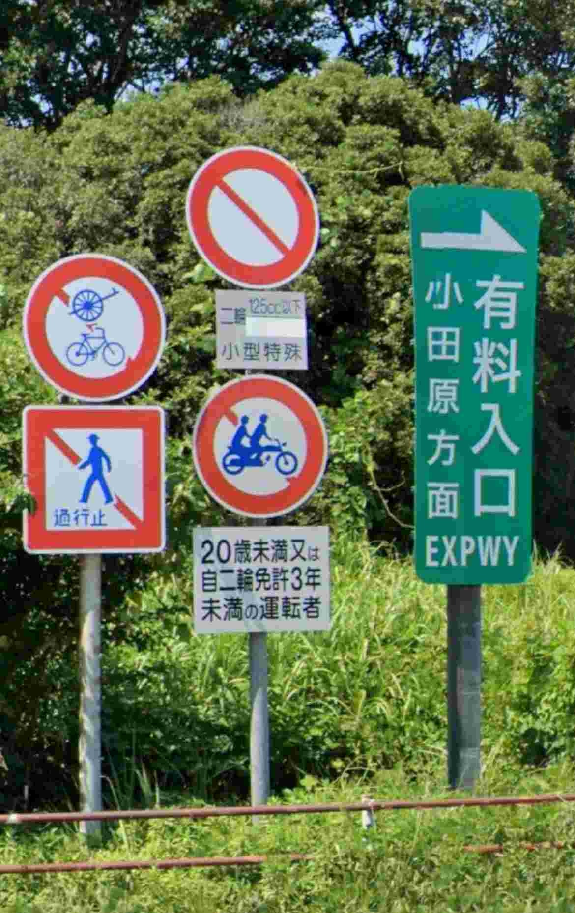 ※ちなみに今井IC〜戸塚IC間は二人乗りの制限は無く、原付・小型バイク(125cc以下)も通れるようになる。ただし、軽車両(自転車など)は通行禁止。