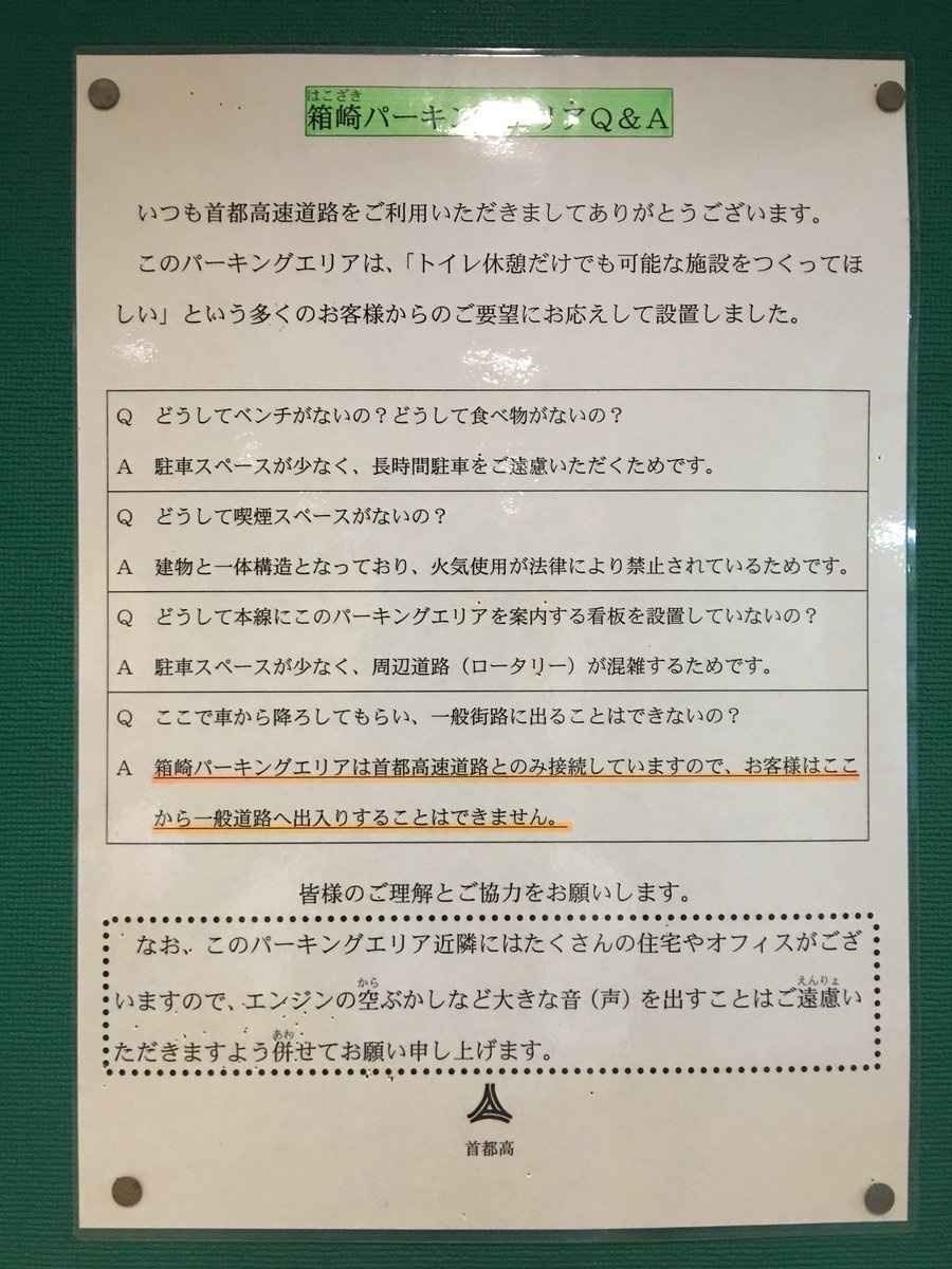 首都高のパーキングエリア(PA)はNEXCO管理の高速道路に比べて小さい気がする。