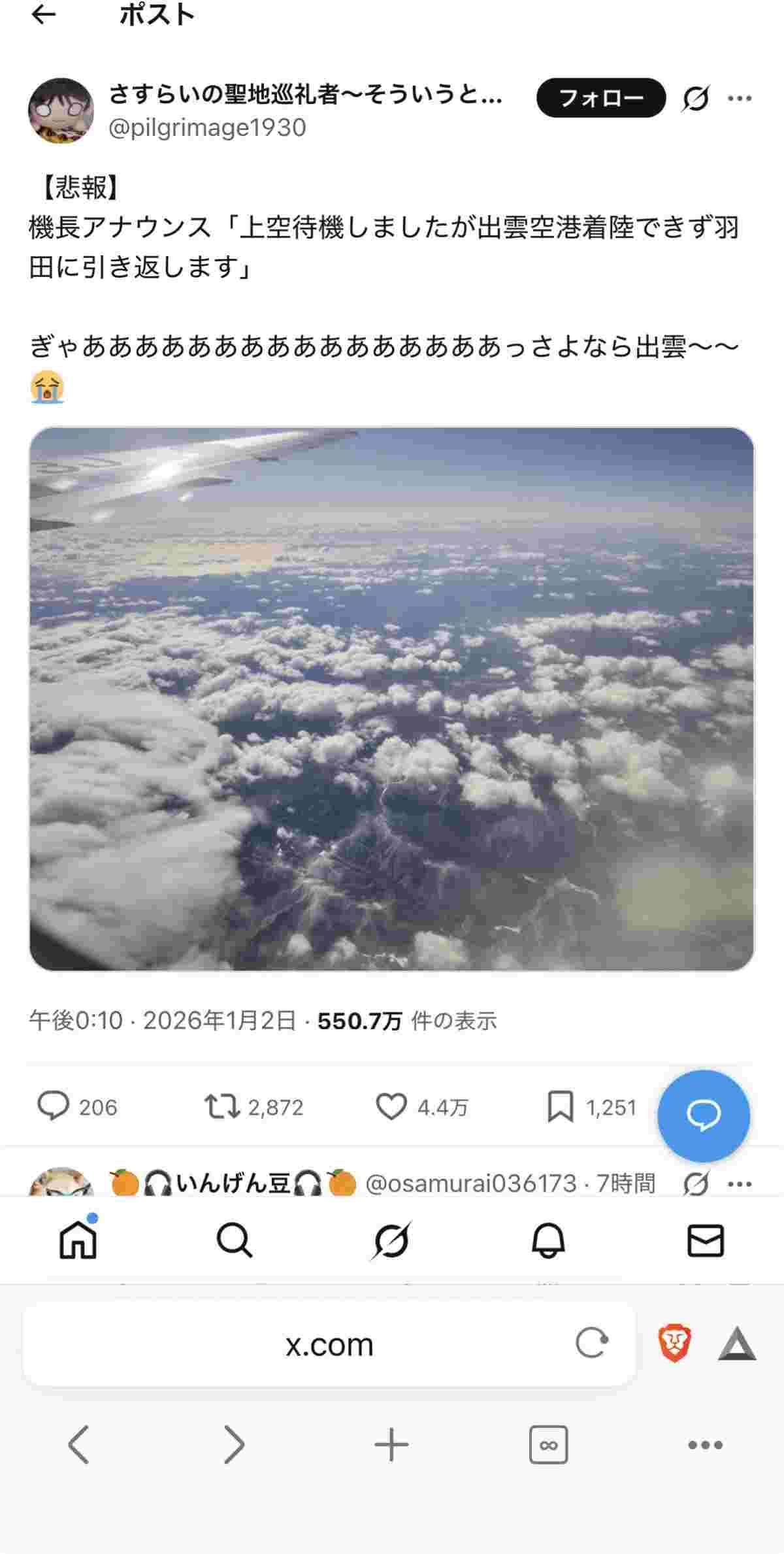 鳥取空港にでも着陸しろよ どうせ運行本数スカスカだろ