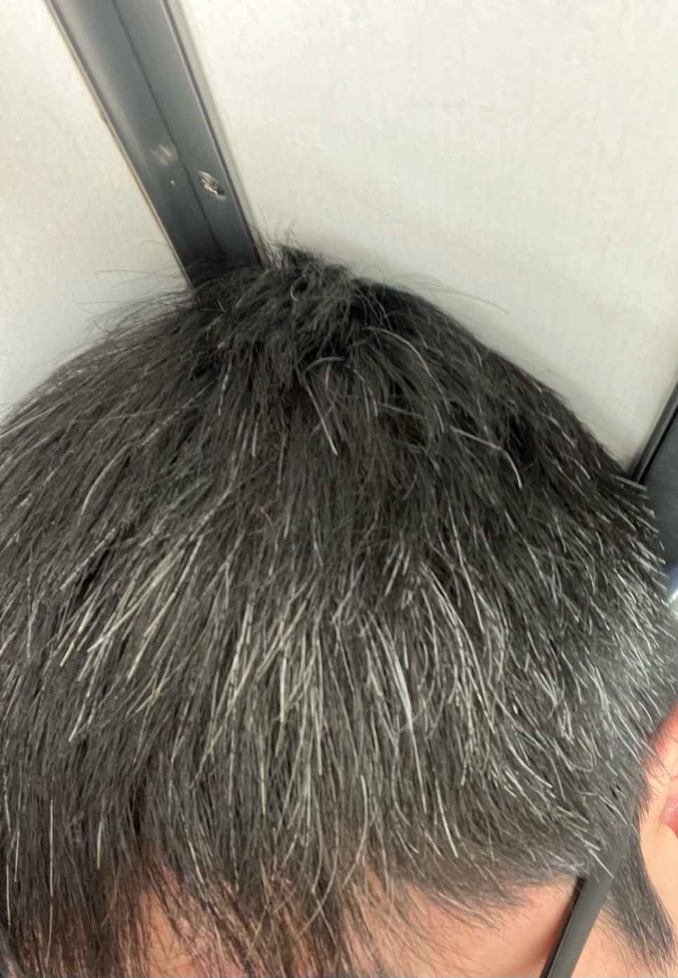 これだと白髪だけ切っても追いつかないし潔く坊主にせえ