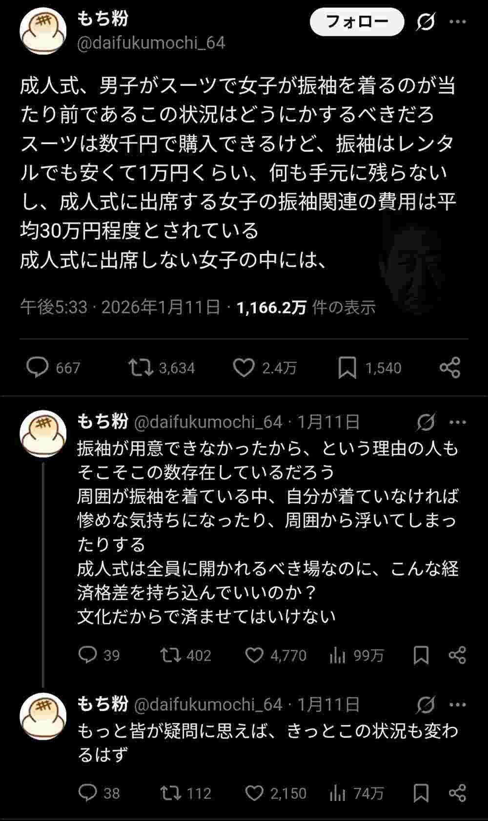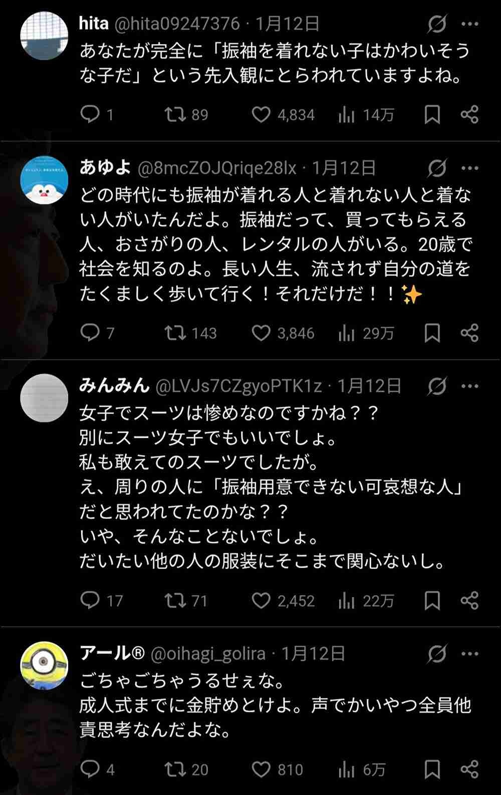 もう学校の制服も女子だってスボン選べるんだし振り袖なんてただの贅沢や