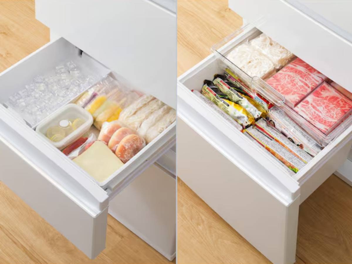 冷凍庫が引き出し2つに分かれてて使いやすい☺