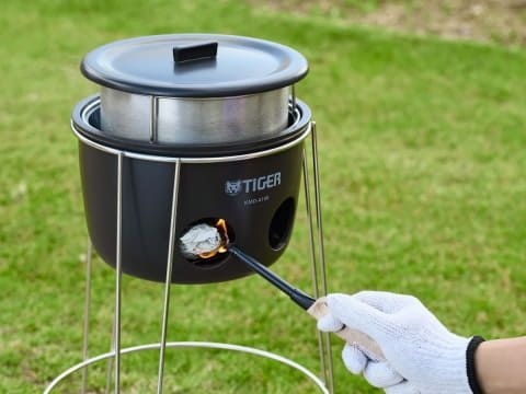 タイガー魔法瓶は、電気やガスを使わずに新聞紙一部でごはんが炊ける「魔法のかまどごはん KMD-A100」