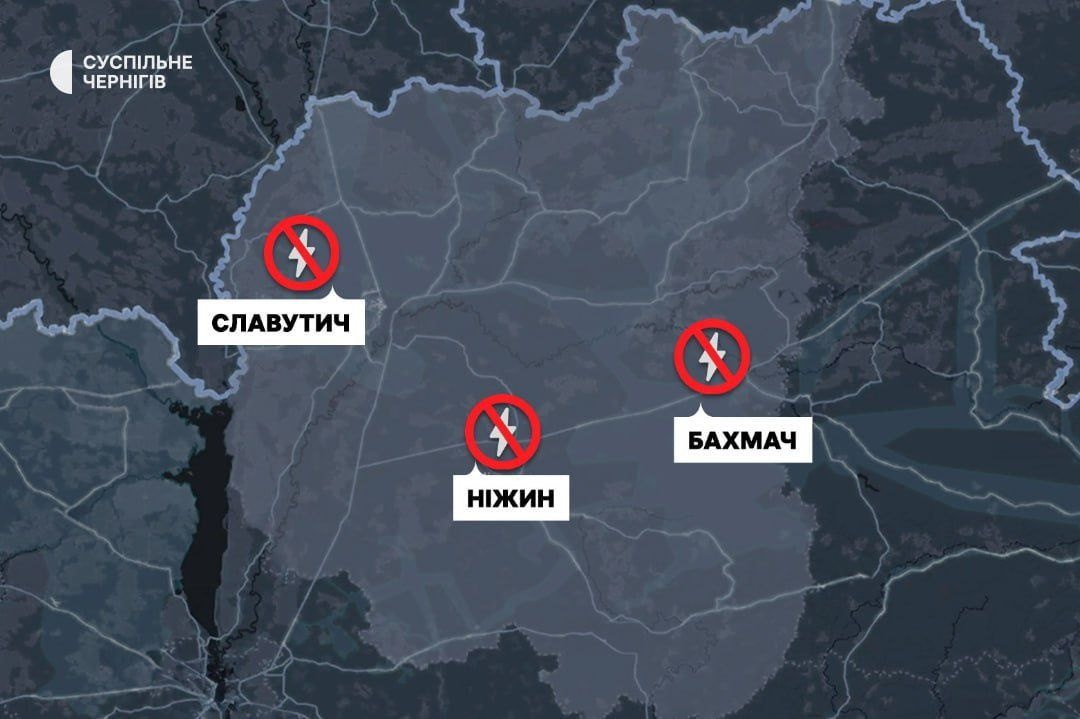 先日の攻撃でキエフ右上に隣接するチェルニヒウ州の州都でほぼ停電