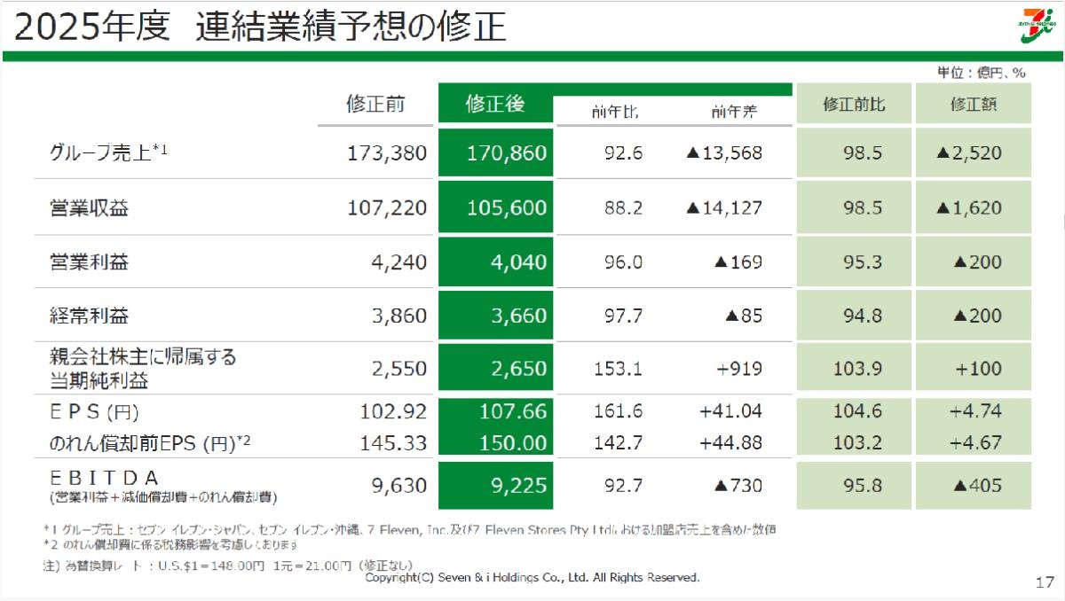 (株)セブン&アイ・ホールディングス(東京都千代田区、スティーブン・ヘイズ・デイカス社長)は2026年2月期業績を下方修正した。