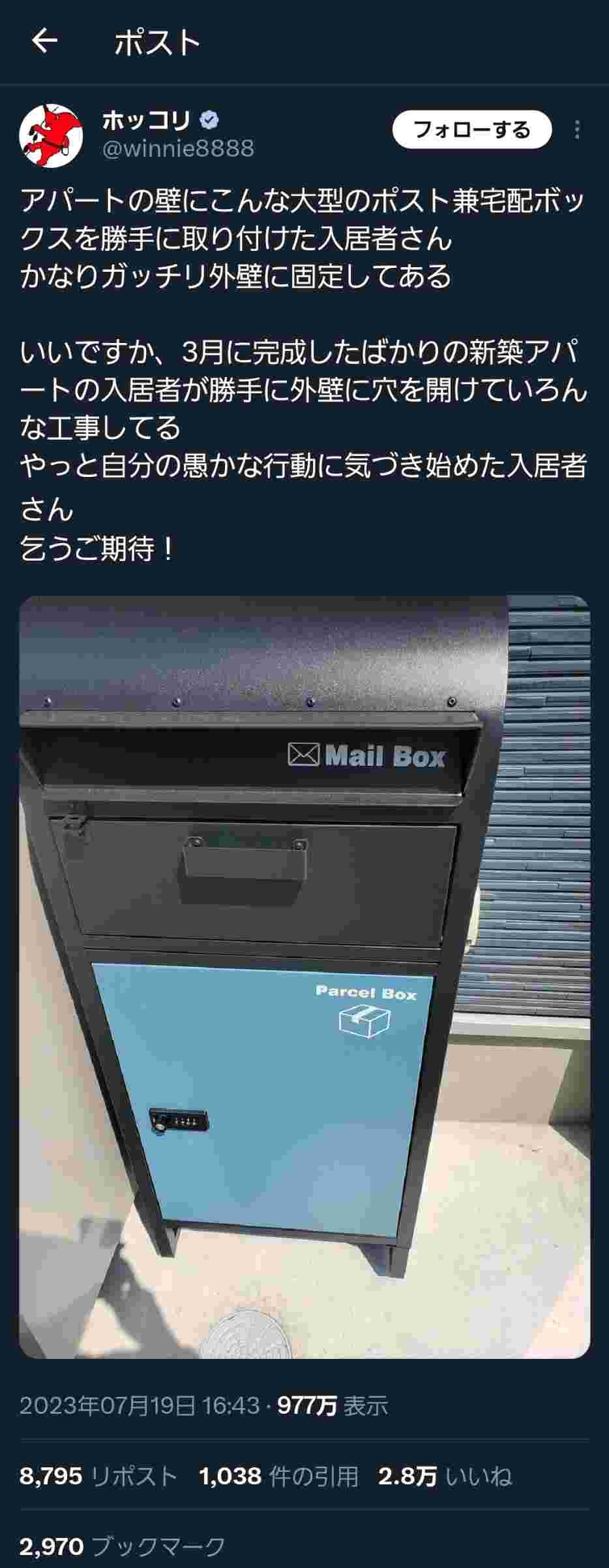 宅配ボックスまではわかるが、なんでそんな壁に穴開けてまで固定しようとしたんだ?