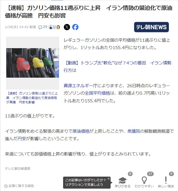 ガソリン暫定税率廃止分の値下げは吹っ飛んだのか
