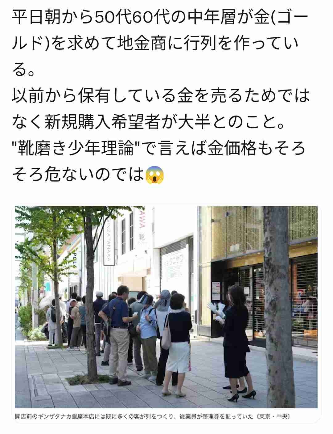 月曜に田中貴金属並ぶわ