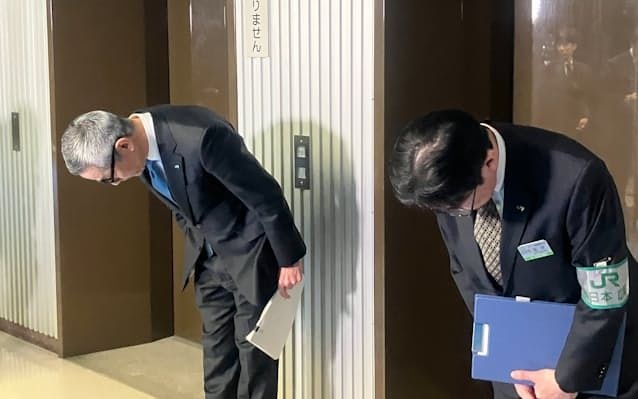 山手線の停電による長時間の輸送障害などについて再発防止の指示を受け、取材に応じるJR東日本の渡利千春副社長=3日、国土交通省