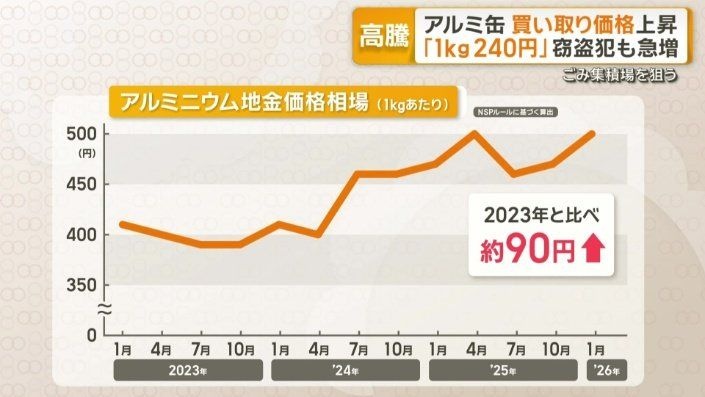さまざまな物の価格が高騰するなか、身近なアルミ缶の価格も上がっています。生活の足しにするため、買い取り業者への持ち込みが増える一方、窃盗事件も起きています。