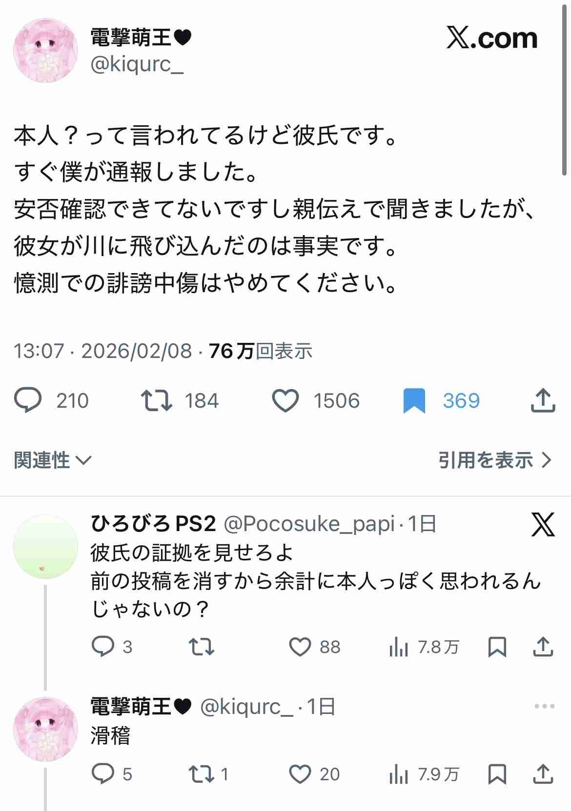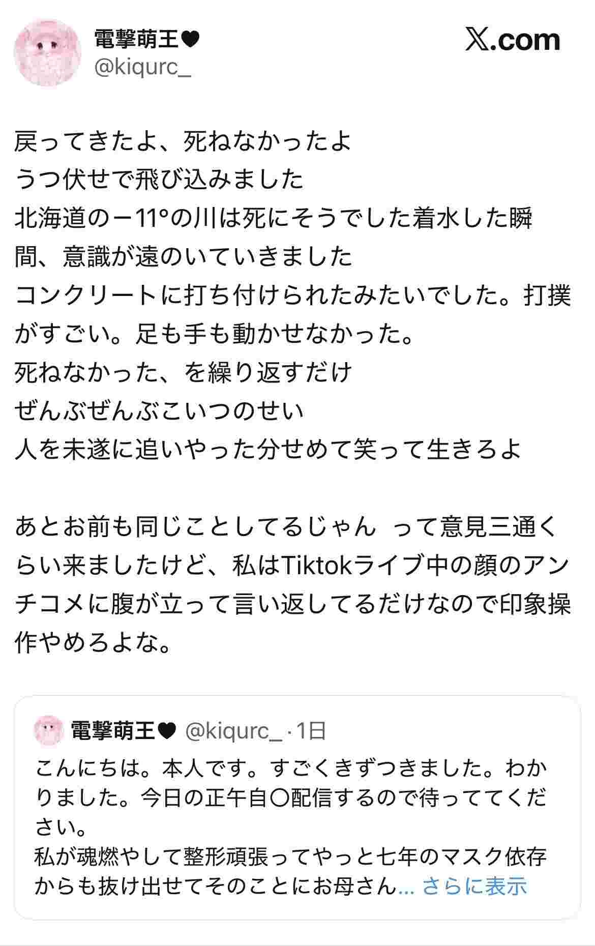 めちゃかわ女の子、容姿を中傷され自殺を決意。北海道の極寒の川に飛び込む。その後また自殺しようと自殺配信開始