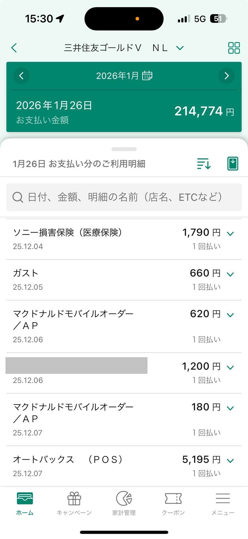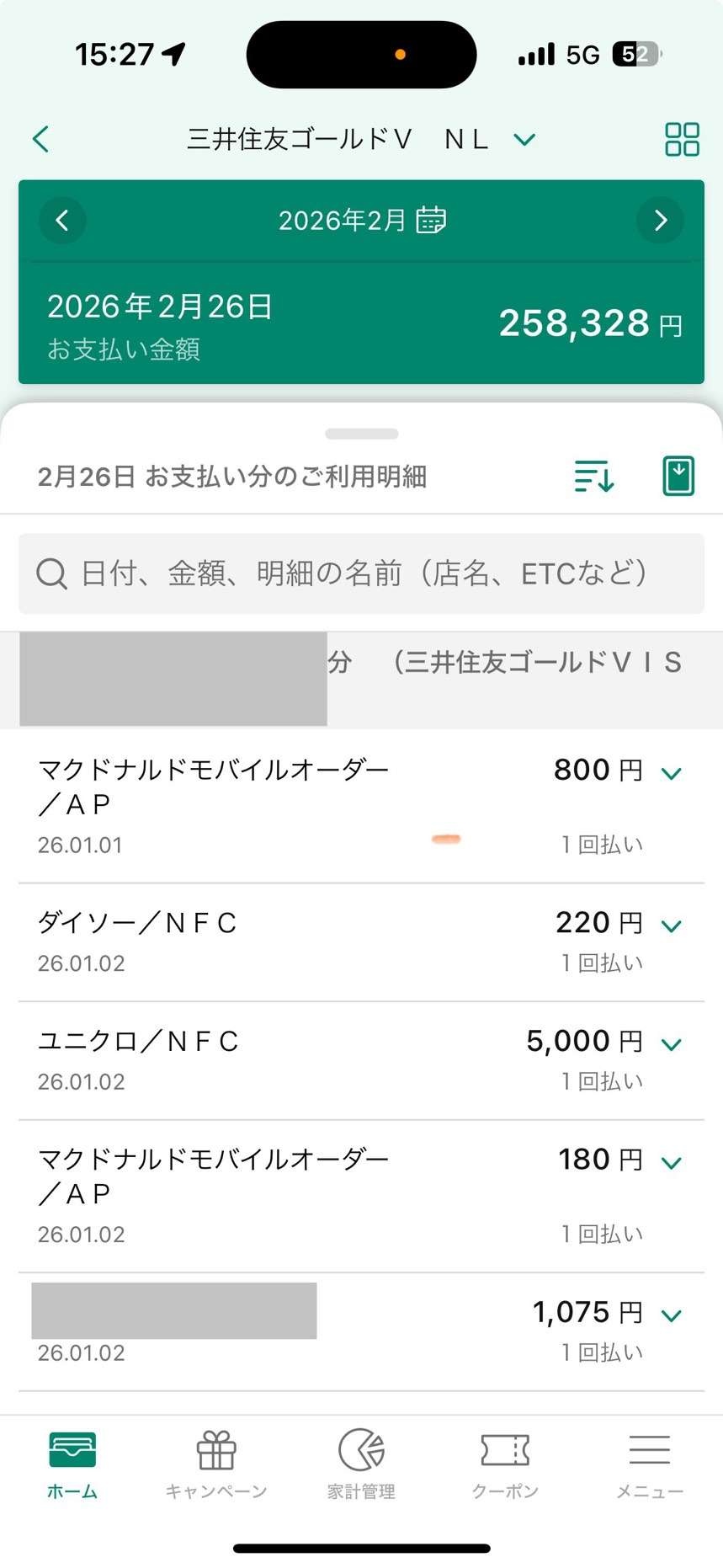 手取り26万、クレカ代26万、家賃引き落とし5万、PayPay代1万😨