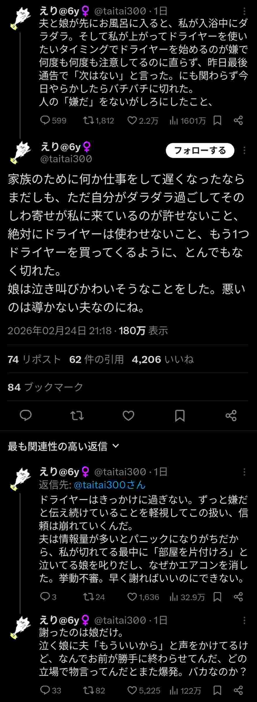 再三警告して直さないポンコツ夫ではなく妻側が叩かれてるのが女憎しというかXの民度を表してるよなぁ
