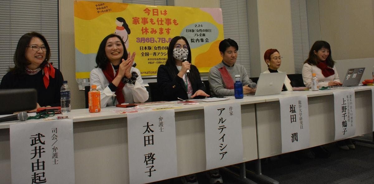 作家のアルテイシアさんは、日本は今のままではジェンダー平等実現が大きく遅れると指摘し、日本版「女性の休日」を男性もサポートしてほしいと訴えました。
