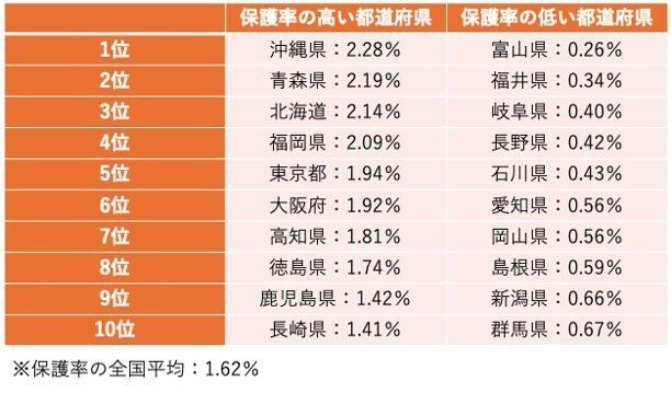 生活保護率の高い都道府県(貧困率が高い)