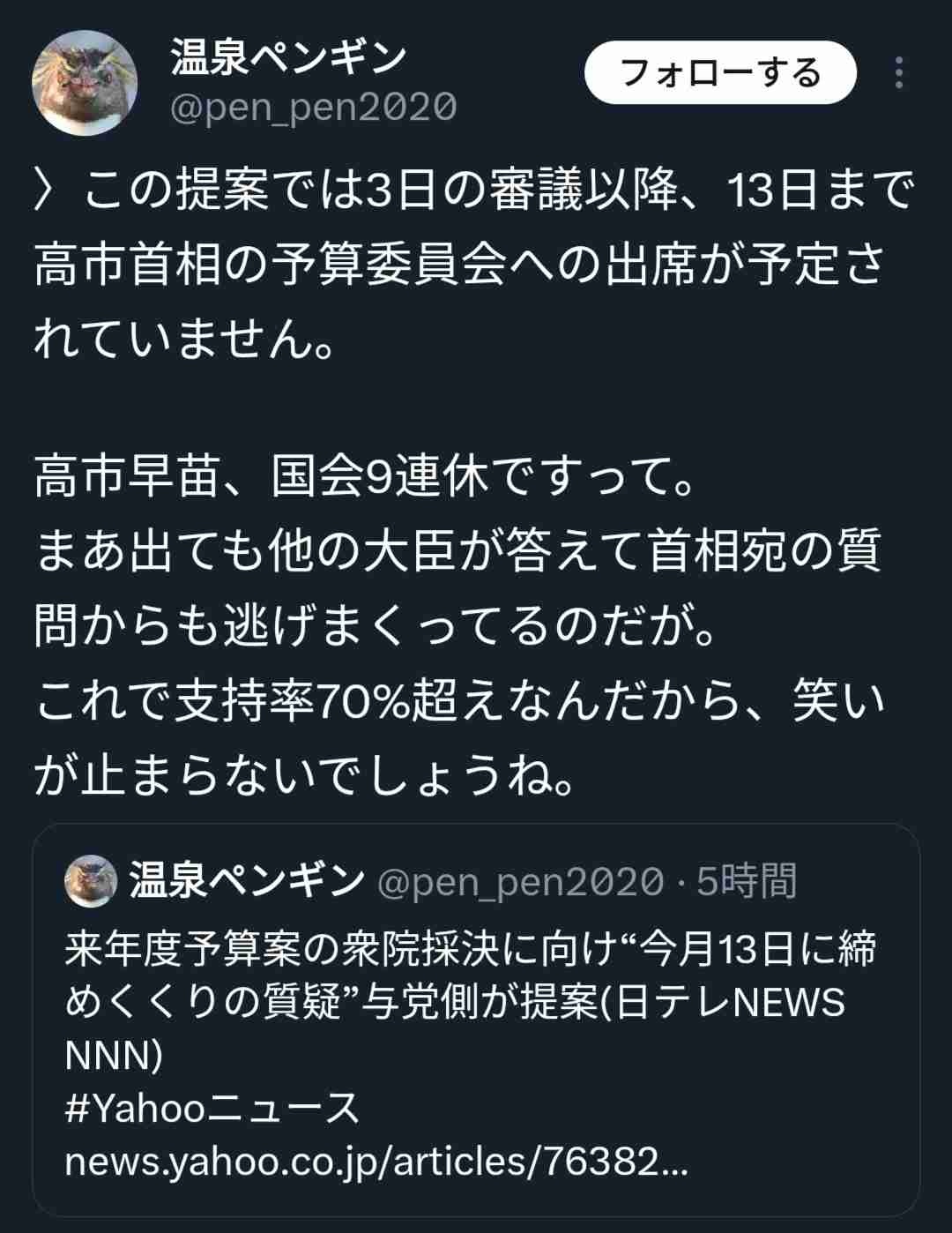 なんで国会答弁させないように自民党が全力で高市を守ってます🤗