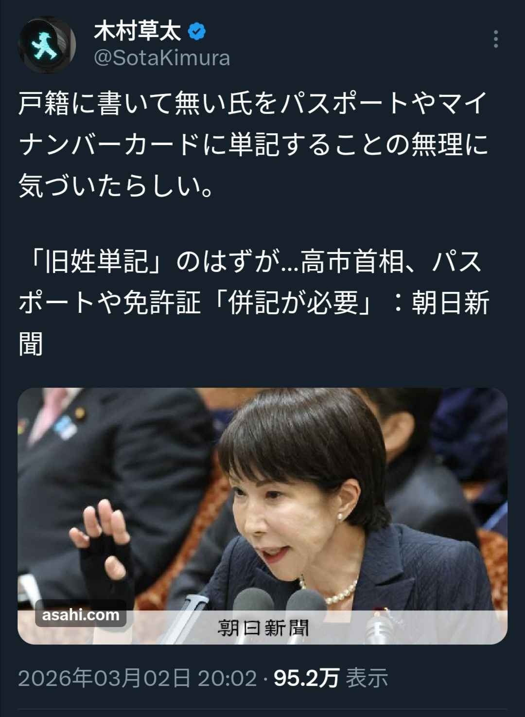 国会に出て喋ると、自分がゴリ押した通称使用の拡大、旧姓単記併記問題でも、全く官僚のレクも受けず、何も問題が分かってないのがバレる始末……