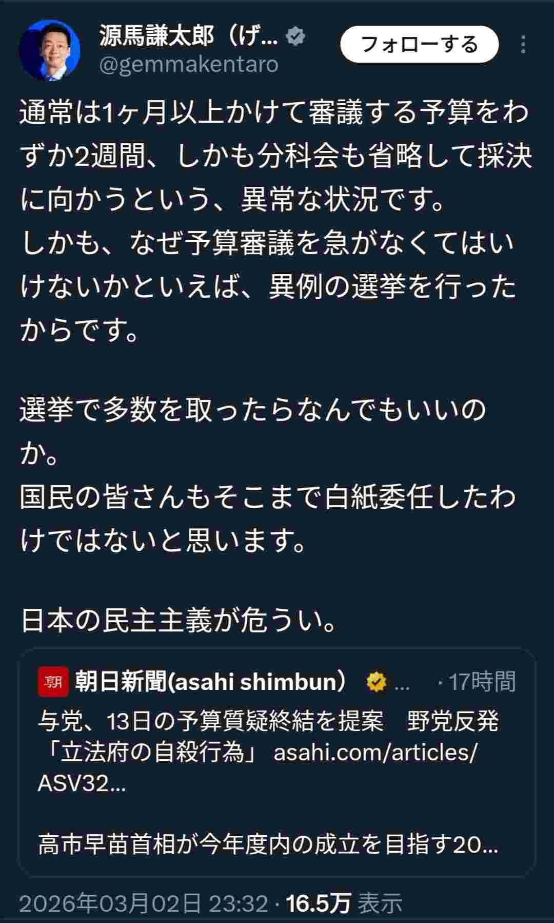 普通は総理入りの集中審議を何回かやるけど全スルーが🦎流