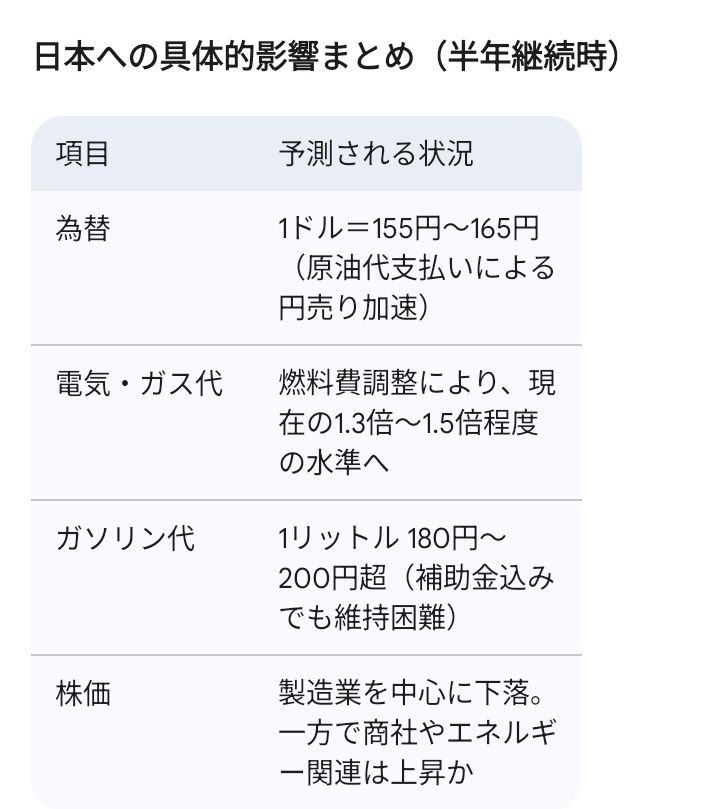 米イラン間の直接的な軍事衝突が2026年3月の現在から半年間続いた場合、日本経済は「輸入インフレ」と「エネルギー危機」の瀬戸際に立たされることになります。