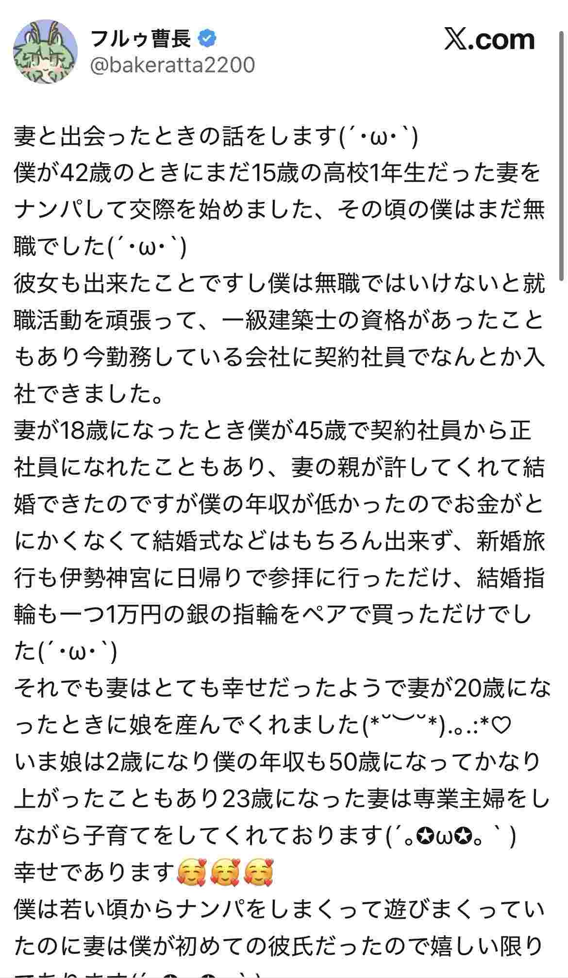 42歳無職のハゲが15歳のJK口説いて結婚とか凄い